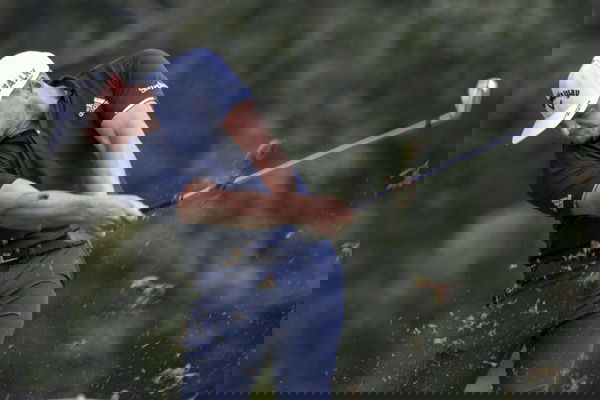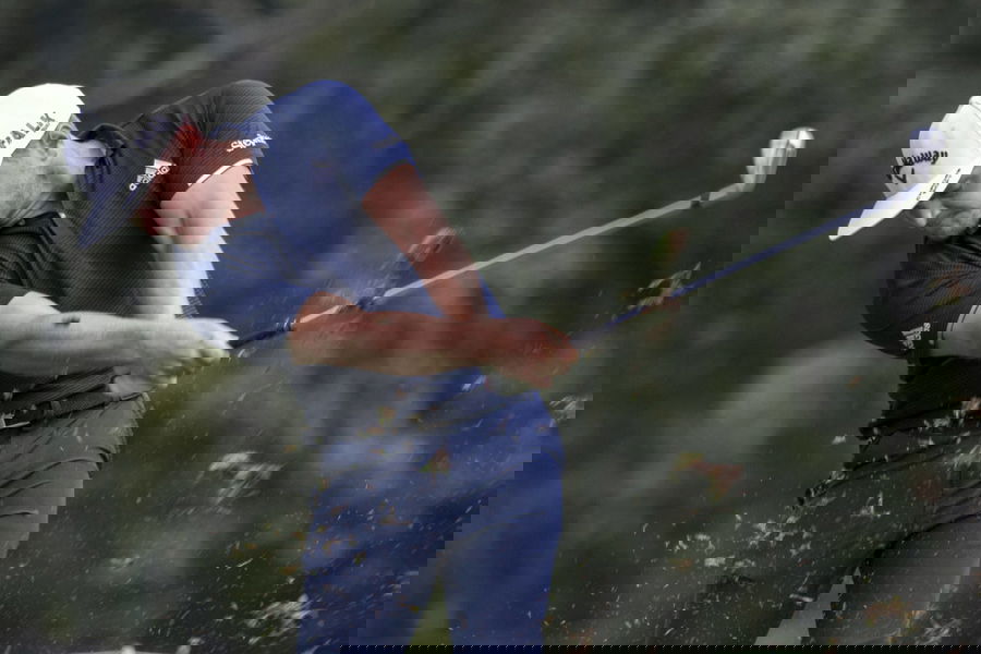 ATLANTA, GA – AUGUST 29: Wyndham Clark losses his club as he tees off on the sixteenth tee during the first round of the 2024 PGA, Golf Herren Tour Championship on August 29, 2024 at East Lake Golf Club in Atlanta, Georgia. Photo by John Adams/Icon Sportswire GOLF: AUG 29 PGA FedExCup Playoffs – TOUR Championship EDITORIAL USE ONLY Icon240829232331