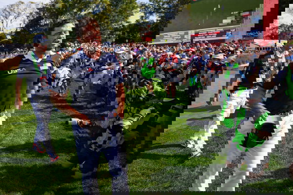 September 27, 2025, Farmingdale, Ny, United States: FARMINGDALE, NY – SEPTEMBER 27: Bryson DeChambeau of Team USA walks off the tee box on hole 10 during the Ryder Cup – Morning Foursomes Matches at Bethpage Black Golf Course on September 27, 2025 in Farmingdale, NY. Farmingdale United States – ZUMAt139 20250927_aaa_t139_161 Copyright: xAlxChang/IsixPhotosx