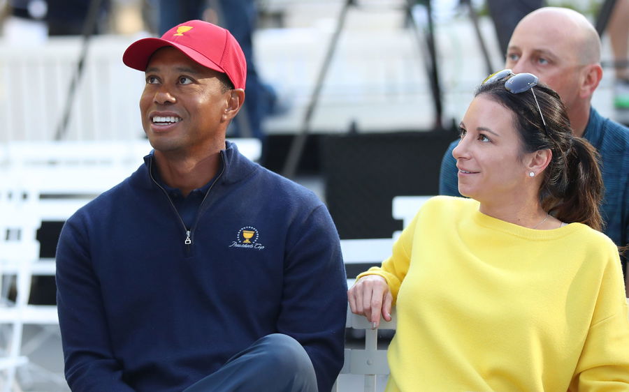 MELBOURNE, AUSTRALIA – DECEMBER 06: Tiger Woods and his girlfriend Erica Herman look on during a Presidents Cup media opportunity at the Yarra Promenade on December 5, 2018 in Melbourne, Australia. The Presidents Cup 2019 will be held on December 9-15, 2019, when it returns to the prestigious Royal Melbourne Golf Club in Australia. (Photo by Scott Barbour/Getty Images)