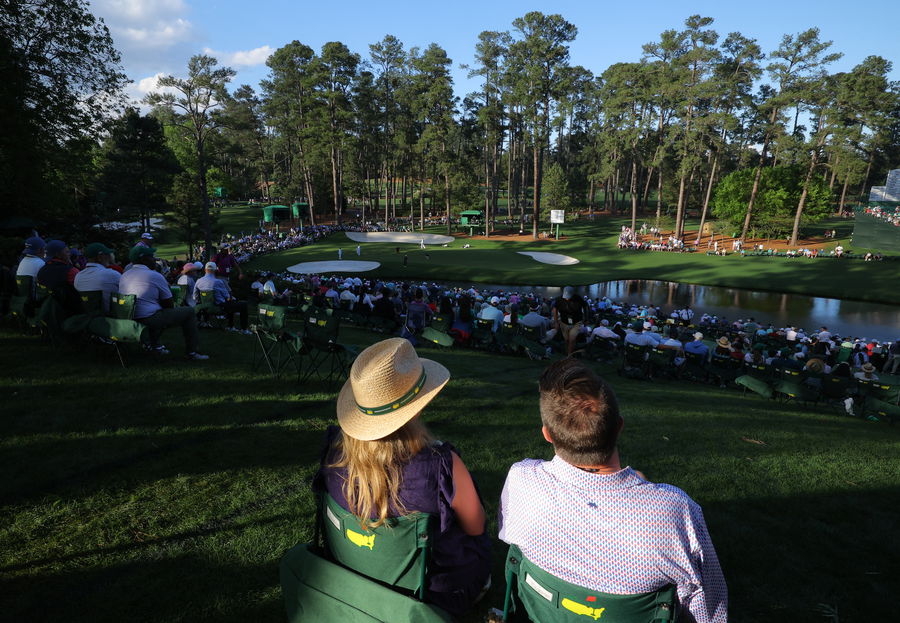 Golf – The Masters – Augusta National Golf Club, Augusta, Georgia, U.S. – April 11, 2024 General view as patrons watch the action on the 16th hole during the first round REUTERS/Brian Snyder
