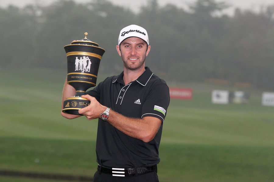 Golfer Dustin Johnson of the United States poses with his champion trophy during the award ceremony of the HSBC Champions golf tournament in Shanghai, China, 3 November 2013. American golfer Dustin Johnson won the HSBC Champions golf tournament at the Sheshan International Golf Club in Shanghai, China, 3 Nov 2013. Against all the other contenders, Johnson pulled away with power and a clutch putt to win his first World Golf Championship in Shanghai. Dustin Johnson wins the championship of the HSBC Champions golf tournament in Shanghai. PUBLICATIONxINxGERxONLY pau905496_05; Sieg Trophäe Siegerehrung x0x xsk 2013 quer