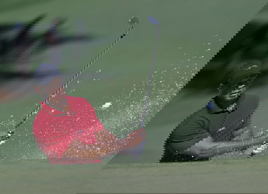 April 14, 2024, Augusta, GA, USA: Tiger Woods chips out of bunker on the seventh hole during the final round of the 2024 Masters Tournament at Augusta National Golf Club, Sunday, April 14, 2024, in Augusta, Georgia. Augusta USA – ZUMAm67_ 0445487735st Copyright: xHyosubxShinx