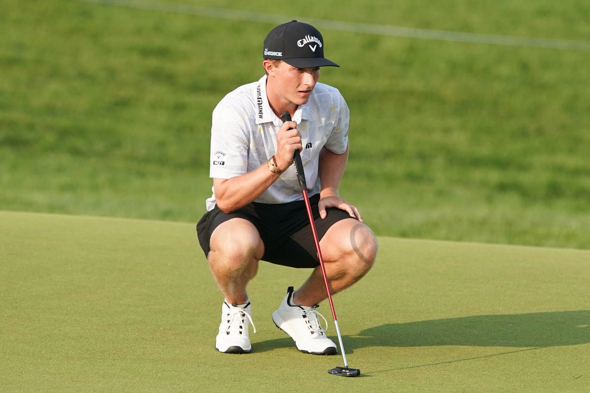 July 23, 2024, Bloomfield Hills, Michigan, USA: Blades Brown R of Nashville, Tennessee lines up a putt on the green during the second round of the 2024 U.S. Junior Amateur Championship at Oakland Hills Country Club. Bloomfield Hills USA – ZUMAw109 20240723_fap_w109_030 Copyright: xDebbyxWongx