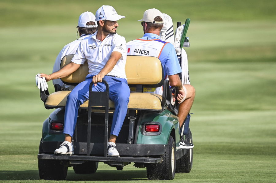 MEMPHIS, TN – AUGUST 08: Abraham Ancer of Mexico rides in a cart to the 18th hole tee for a playoff during the final round of the World Golf Championships-FedEx St. Jude Invitational at TPC Southwind on August 8, 2021 in Memphis, Tennessee. (Photo by Keyur Khamar/PGA TOUR via Getty Images)