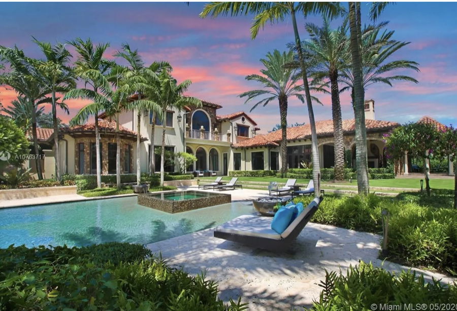 Norman’s new estate has a tennis court, a club room, a cinema room, a swim-up bar, an expansive pool, a summer kitchen, cabanas, and lounging places throughout. The home, which has six bedrooms and nine bathrooms, also have views of a lake and a golf course.