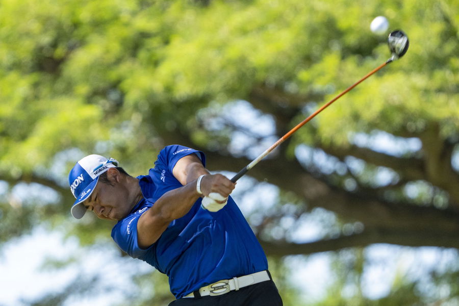 January 15, 2022; Honolulu, Hawaii, USA; Hideki Matsuyama hits his tee shot on the second hole during the third round of the Sony Open in Hawaii golf tournament at Waialae Country Club. Mandatory Credit: Kyle Terada-USA TODAY Sports