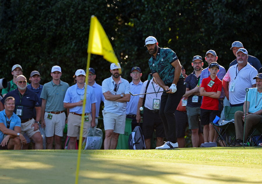 Golf – The Masters – Augusta National Golf Club, Augusta, Georgia, U.S. – April 11, 2024 Dustin Johnson of the U.S. chips onto the green on the 6th hole during the first round REUTERS/Mike Blake