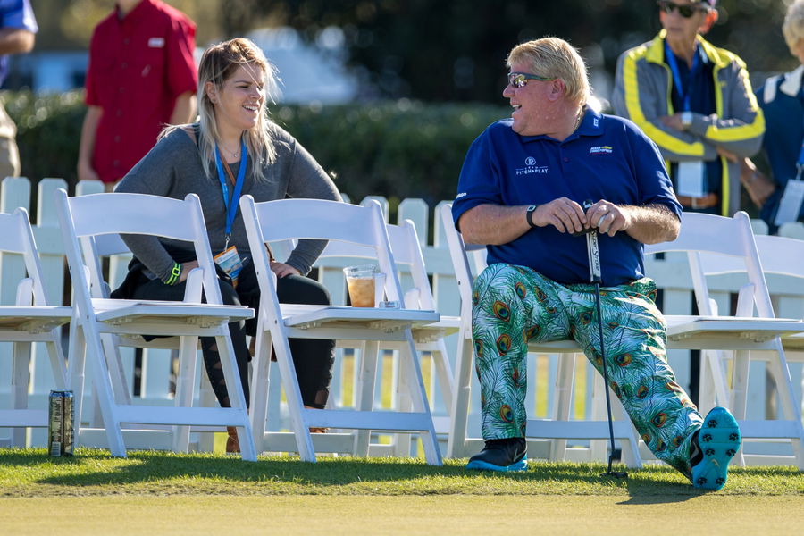 ORLANDO, FL – DECEMBER 16: John Daly and his daughter chat on the putting green before the third round of the PNC Father/Son Challenge at The Ritz-Carlton Golf Club on December 16, 2017 in Orlando, Florida. (Photo by Manuela Davies/Getty Images)