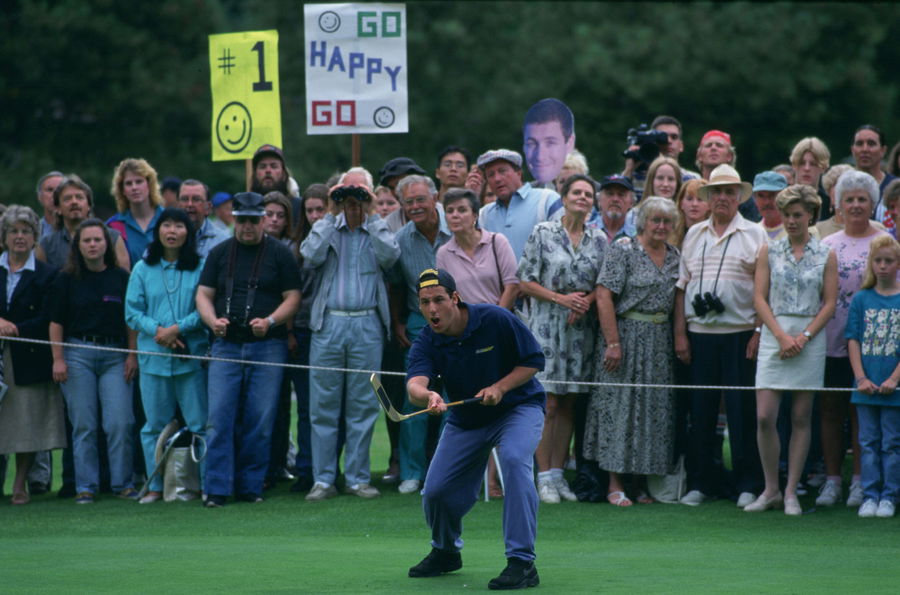 HAPPY GILMORE ADAM SANDLER Date: 1996. Strictly editorial use only in conjunction with the promotion of the film. Credit line mandatory. This image is copyright of the film company and is supplied under the terms of issue as film still. No commercial or book cover use permitted without prior consent from the film company. PUBLICATIONxINxGERxSUIxAUTxONLY Mandatory credit line: Image courtesy UNIVERSAL PICTURES / Ronald Grant Archive / Mary Evans