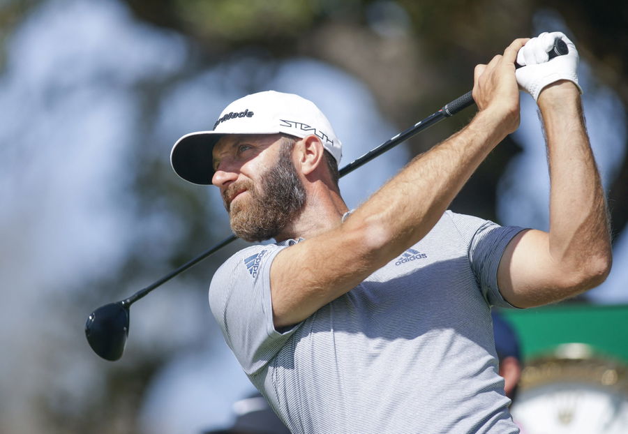 Mar 27, 2022; Austin, Texas, USA; Dustin Johnson tees off on the 10th and beat Dustin Johnson in the semifinal round of the World Golf Championships-Dell Technologies Match Play golf tournament. Mandatory Credit: Erich Schlegel-USA TODAY Sports