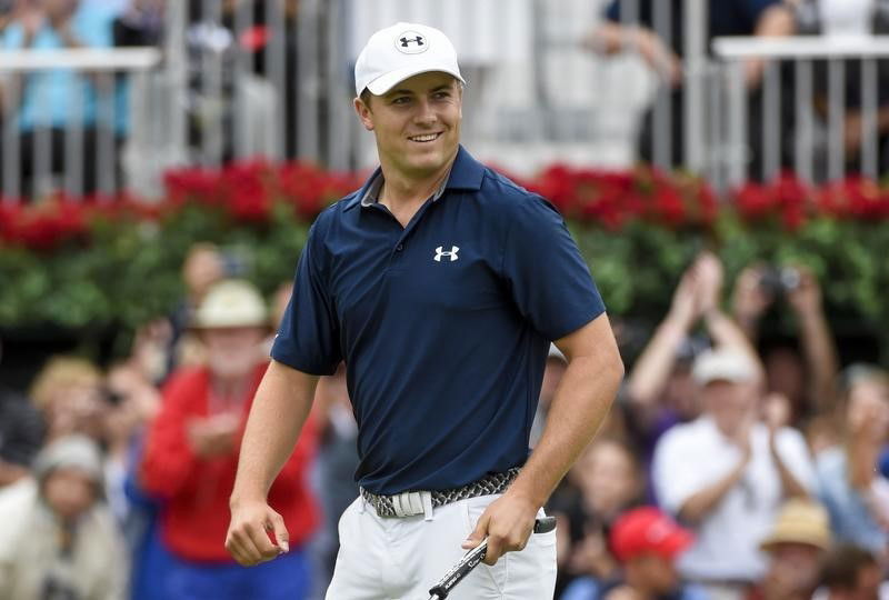 Golf – The 149th Open Championship – Royal St George’s, Sandwich, Britain – July 18, 2021 Jordan Spieth of the U.S. acknowledges the crowd on the 18th green after completing his final round REUTERS/Rebecca Naden