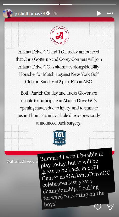 Justin Thomas admitted that he might miss some tournaments at the beginning of 2026 as he is still recovering from his hip surgery. That will include a few of the TGL matches as well. It might be a cause of concern for Atlanta Drive GC. Especially if another one of their players also gets injured in the meantime.