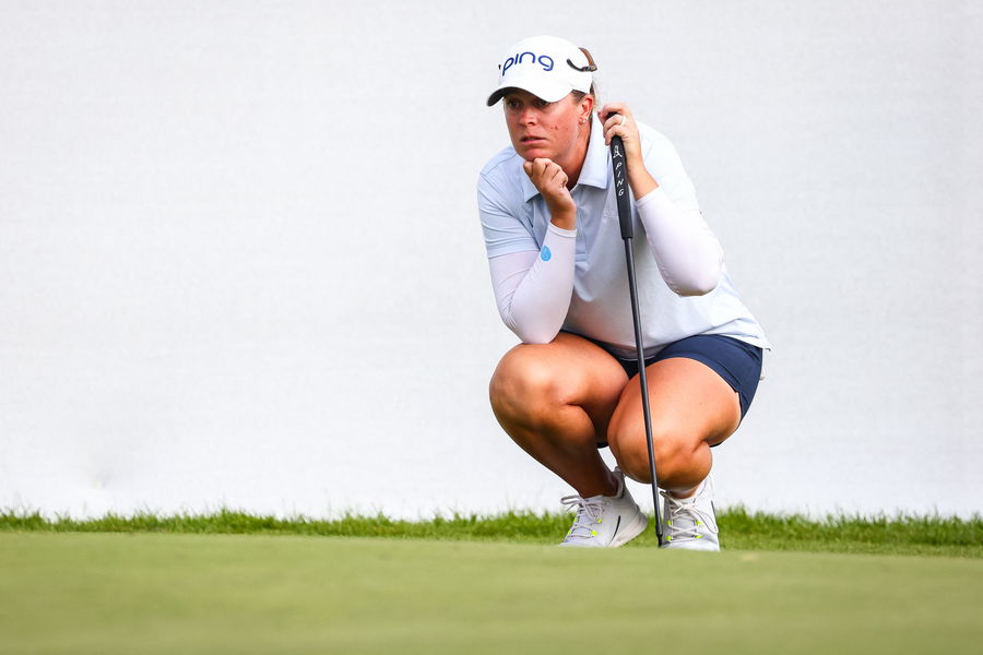 Jul 28, 2024; Calgary, Alberta, CAN; Lauren Coughlin on the 18th green during the final round of the CPKC Women’s Open golf tournament. Mandatory Credit: Sergei Belski-USA TODAY Sports