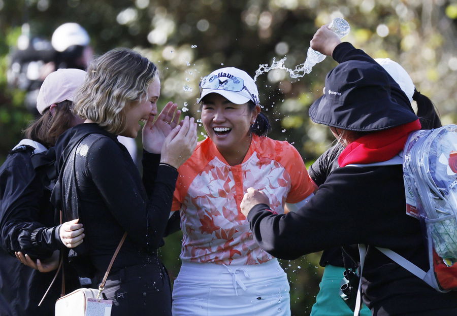 Rose Zhang gets splashed with bottled water after winning the Augusta National Women s Amateur in a playoff over Jenny Bae at Augusta National Golf Club on April 1, 2023 in Augusta, Georgia.