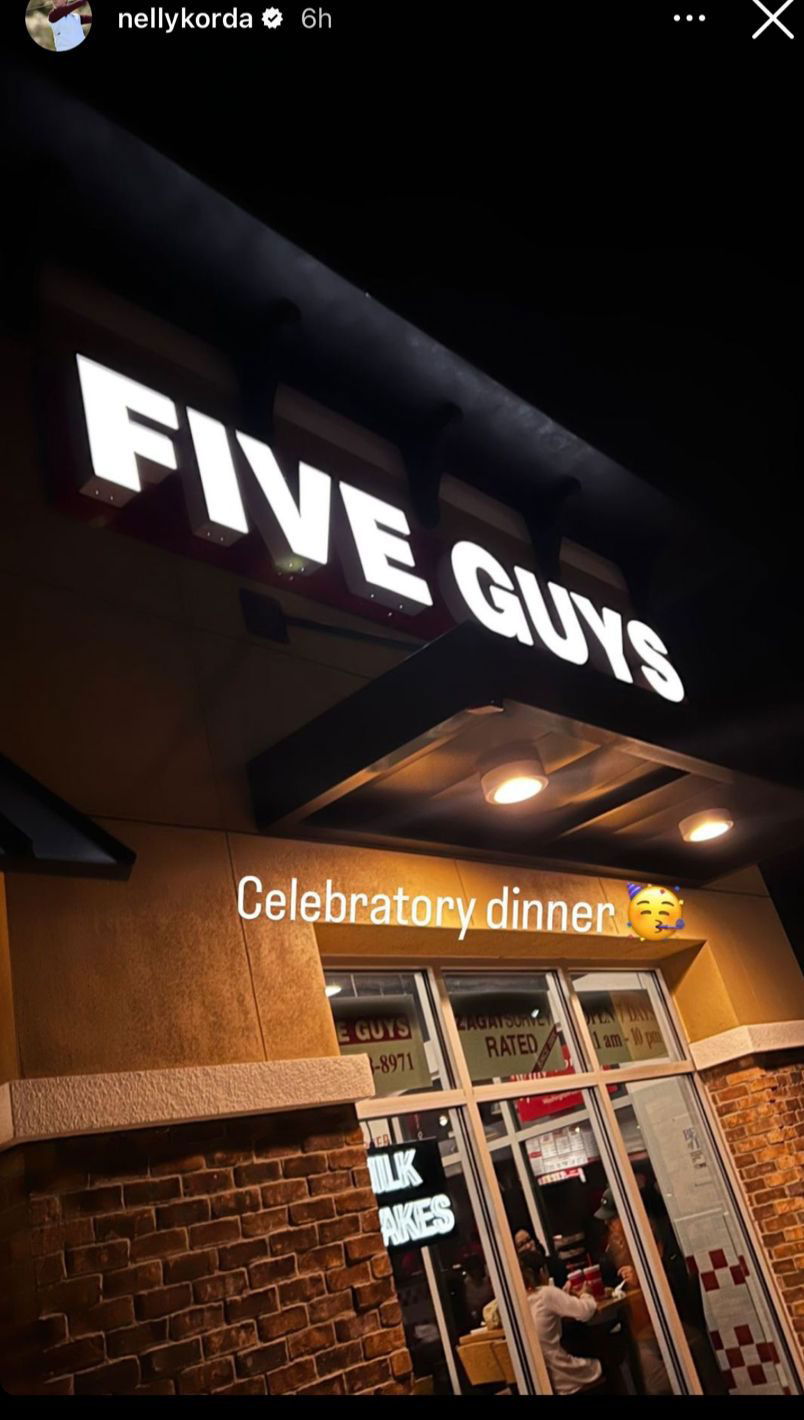 Korda’s fans have been eager to know about everything she has been up to ever since she showed her spectacular skills at the event. And to share her celebratory rituals with the fans, Korda posted an Instagram story standing at ‘Five Guys,’ a famous fast-food restaurant company. The golfer won a huge amount of $300,000 in prize money. But rather than spending a chunk of it on celebrations, Korda decided to enjoy at the nearby ‘Five Guys.’