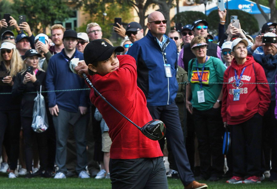 December 18, 2022, Orlando, Florida, United States: Charlie Woods tees off on the first hole during the final round of the PNC Championship at the Ritz-Carlton Golf Club in Orlando. Orlando United States – ZUMAs197 20221218_zaa_s197_351 Copyright: xPaulxHennessyx