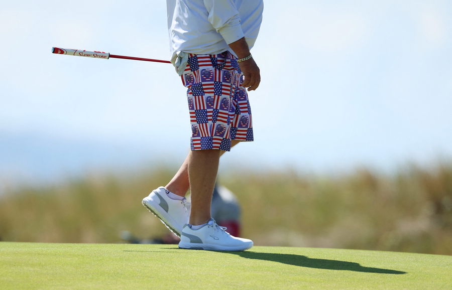 Golf – The 151st Open Championship – Royal Liverpool, Hoylake, Britain – July 19, 2023 General view of the shorts worn by John Daly of the U.S. during a practice round REUTERS/Phil Noble
