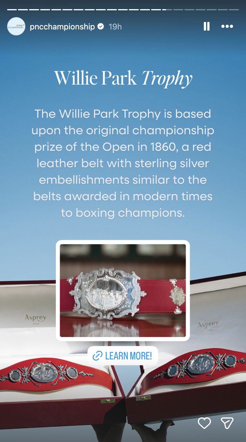 Apart from being a family team event and the $1.085 million it offers in prize money, the PNC Championship is also known for its unique trophy. The PNC Championship trophy is called the Willie Park Trophy. Most golfing events feature a cup as a trophy, be it the Masters Trophy, the Claret Jug, or the Hero World Challenge Trophy. But the Willie Park Trophy is different because of its resemblance to modern-day belts given to boxing champions.