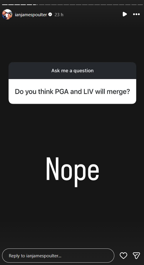 Ian Poulter held a Q&A session on his Instagram stories a few hours ago. That led to him responding to a number of fan questions about his career and life. One of the fans asked him if the PGA Tour and LIV Golf merger will happen. Poulter clearly replied by writing, “Nope.”