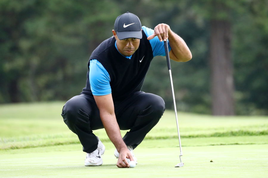 INZAI, JAPAN – OCTOBER 27: Tiger Woods of the United States lines up a putt on the 2nd green during the third round of the Zozo Championship at Accordia Golf Narashino Country Club on October 27, 2019, in Inzai, Chiba, Japan. (Photo by Chung Sung-Jun/Getty Images)