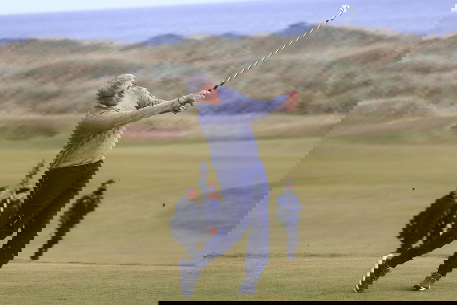 RECORD DATE NOT STATED 4th October 2024 Kingsbarns, Fife, Scotland Alfred Dunhill Links Golf Championship, Round 2 Jay Monahan, Commissioner of the PGA, Golf Herren TOUR, hits a shot from the fairway on the sixth hole on Kingsbarns Golf Links, during the second round of the Dunhill Links Championship PUBLICATIONxNOTxINxUK ActionPlus12699793 DavidxYoung