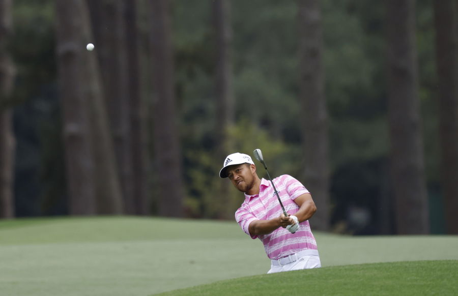 Golf – The Masters – Augusta National Golf Club – Augusta, Georgia, U.S. – April 10, 2021 Xander Schauffele of the U.S. hits his approach to the 8th hole during the third round REUTERS/Mike Segar