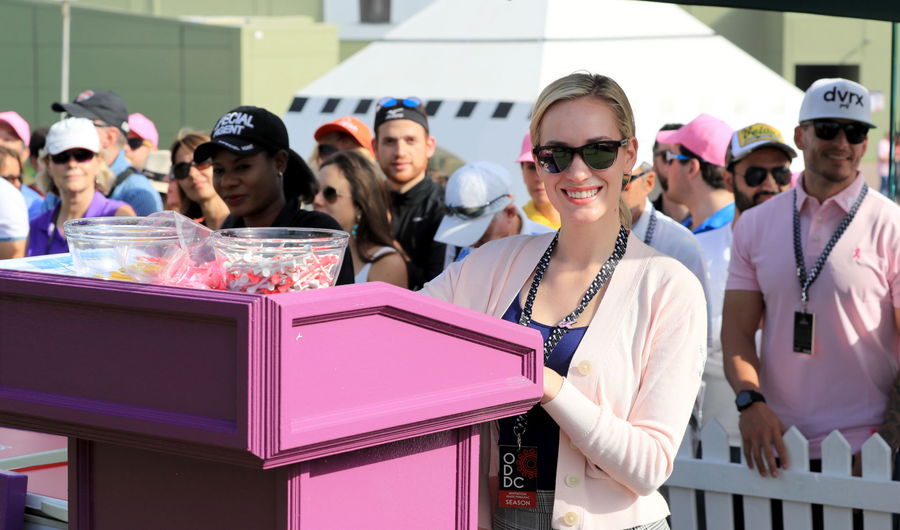 DUBAI, UNITED ARAB EMIRATES – JANUARY 26: Paige Spiranac of tThe United States working as the official starter on the first tee during the second round of the Omega Dubai Desert Classic on the Majlis Course at Emirates Golf Club on January 26, 2018 in Dubai, United Arab Emirates. (Photo by David Cannon/Getty Images)