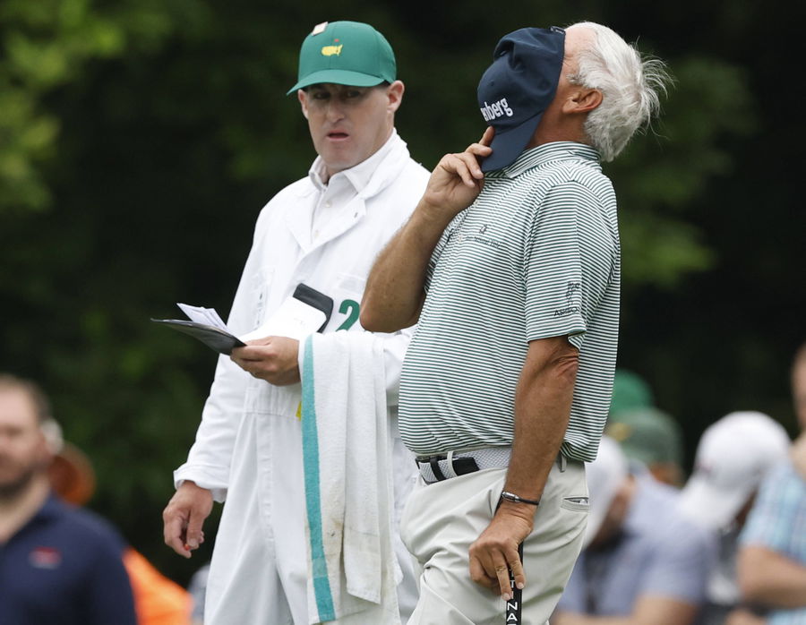 Fred Couples reacts during the first round next to his caddie George Downing at the Masters tournament at Augusta National Golf Club in Augusta, Georgia on Thursday, April 6, 2023. PUBLICATIONxINxGERxSUIxAUTxHUNxONLY AUG20230406258 JOHNxANGELILLO. Image Courtesy: IMAGO