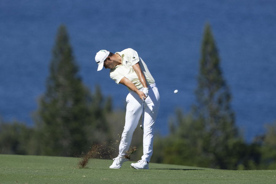January 6, 2022; Maui, Hawaii, USA; Collin Morikawa hits his second shot on the fourth hole during the first round of the Sentry Tournament of Champions golf tournament at Kapalua Resort – The Plantation Course. Mandatory Credit: Kyle Terada-USA TODAY Sports