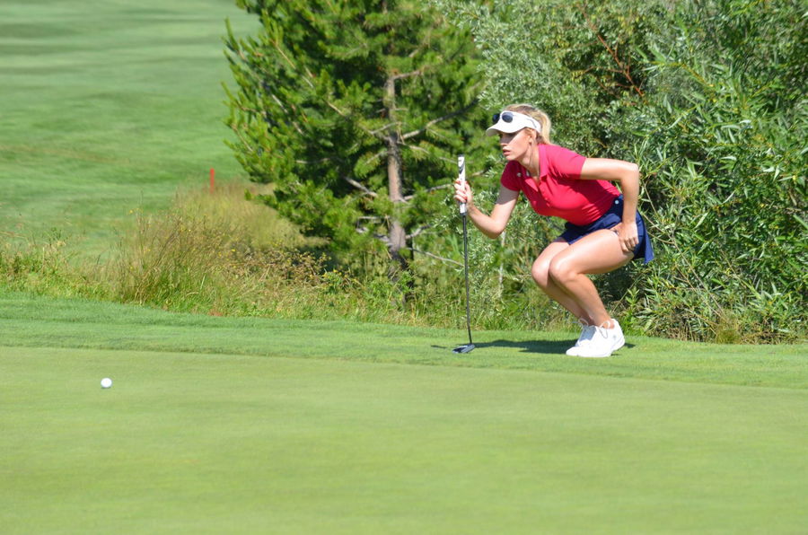 STATELINE, NV – JULY 14: Professional golfer Paige Spiranac lines up her putt during the American Century Celebrity Golf Championship on July 14, 2017 at the Edgewood Tahoe Golf Course in Stateline, NV. (Photo by Lyle Setter/Icon Sportswire) GOLF: JUL 14 American Century Celebrity Golf Championship PUBLICATIONxINxGERxSUIxAUTxHUNxRUSxSWExNORxDENxONLY Icon170714029