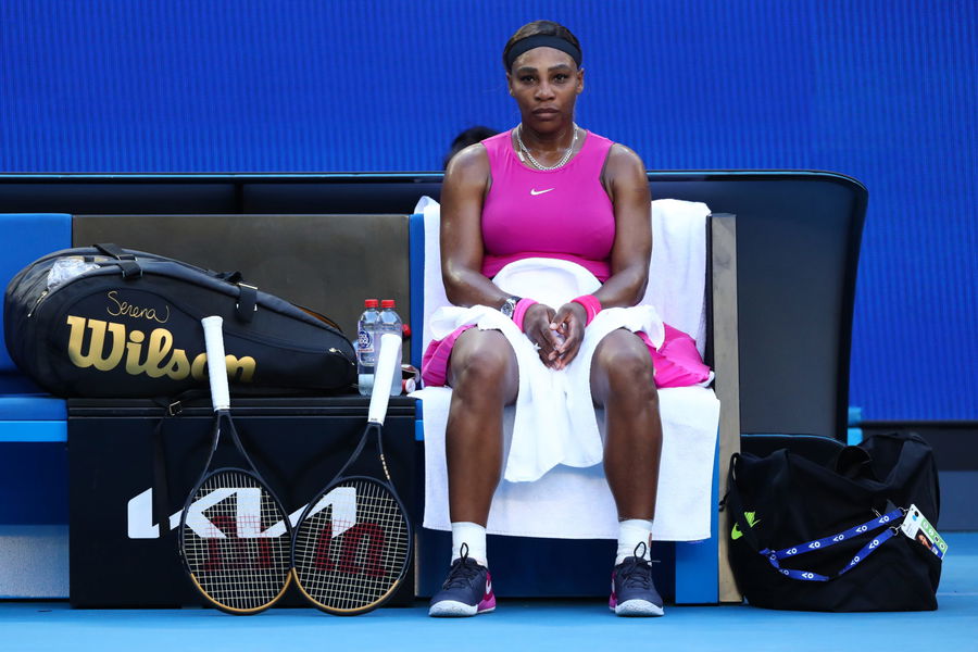MELBOURNE, AUSTRALIA – FEBRUARY 03: Serena Williams of the United States is seen during the set break in her match against Tsvetana Pironkova of Bulgaria during day four of the WTA 500 Yarra Valley Classic at Melbourne Park on February 03, 2021 in Melbourne, Australia. (Photo by Mike Owen/Getty Images)