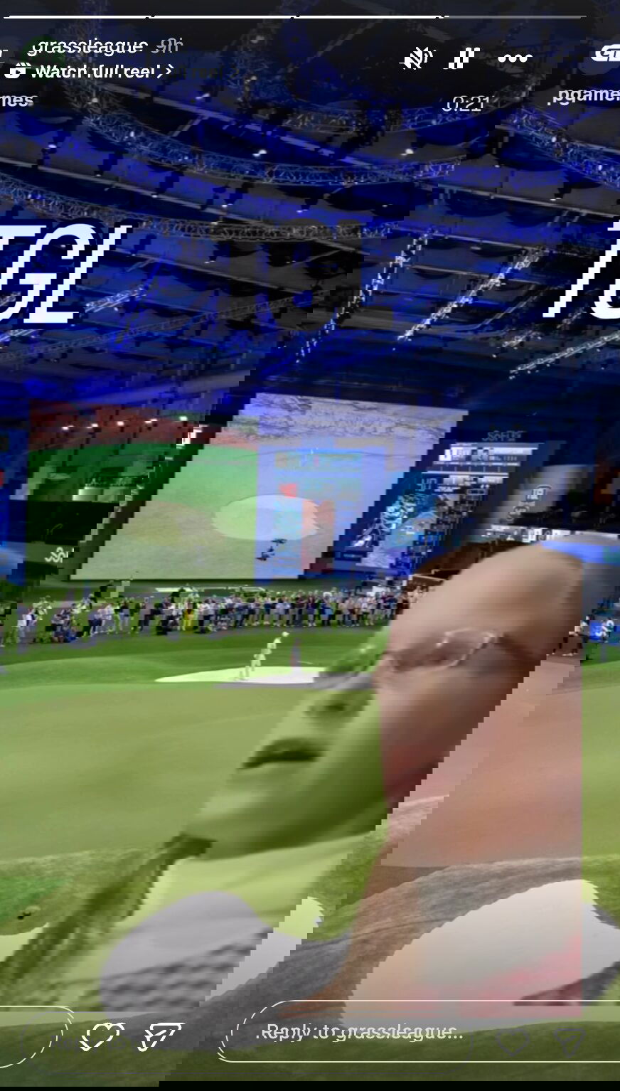 The Reel, shared by Grass League on its Instagram story, sequences images of Tiger Woods and Rory McIlroy’s TGL along with LIV Golf, PGA Tour, and Grass League. Each image has overlaying songs. These are humorous tracks shading gimmicky or traditional formats. Grass League’s image comes last, signifying that it is the authentic “grass” alternative.