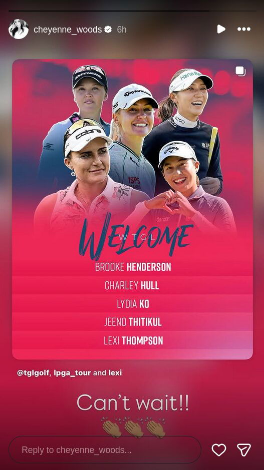 On Monday, TMRW Sports unveiled the first batch of LPGA pros signing up for WTGL. The star-studded list includes but is not limited to Charley Hull, world no. 1 Jeeno Thitikul, and Lexi Thompson. Only after the announcement did Cheyenne Woods, niece of Tiger Woods, finally chime in with her strongly excited take.