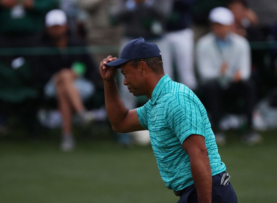 Golf – The Masters – Augusta National Golf Club – Augusta, Georgia, U.S. – April 8, 2022, Tiger Woods of the U.S. walks up the 18th fairway during the second round REUTERS/Brian Snyder