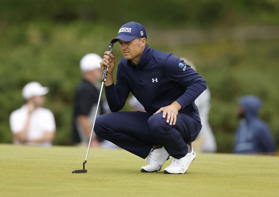 Golf – The 152nd Open Championship – Royal Troon Golf Club, Troon, Scotland, Britain – July 19, 2024 Jordan Spieth of the U.S. lines up a putt on the 10th green during the second round REUTERS/Jason Cairnduff
