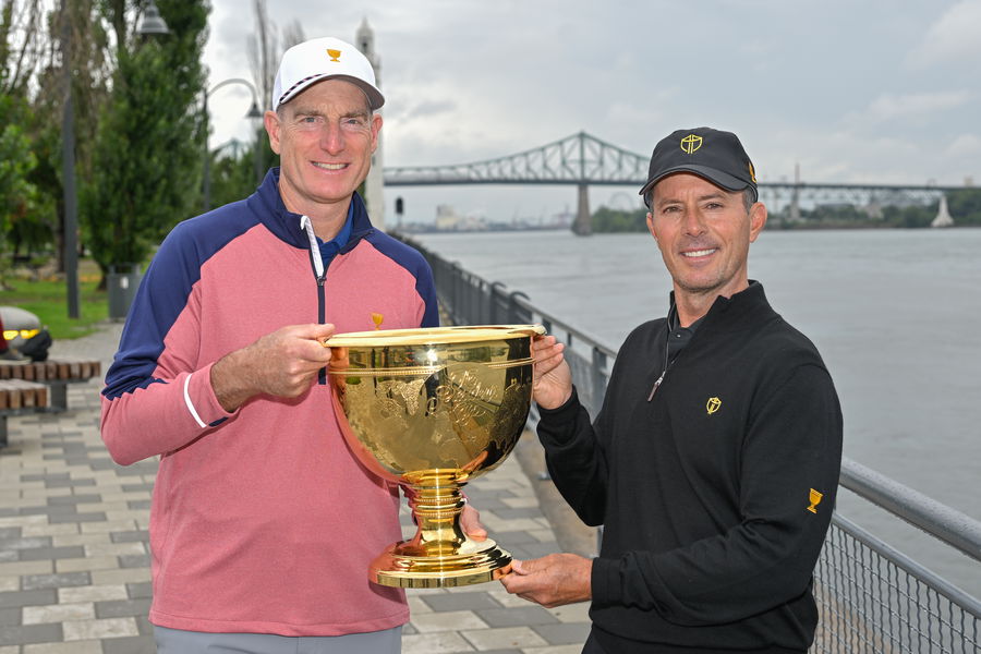 MONTREAL, CANADA – USA Captain Jim Furyk and International Captain Mike Weir visit the Centre Bell, home of the Montreal Canadiens mens hockey team, in Montreal, Quebec, Canada, on September 13, 2023. (Photo by Ben Jared/PGA TOUR via Getty Images)