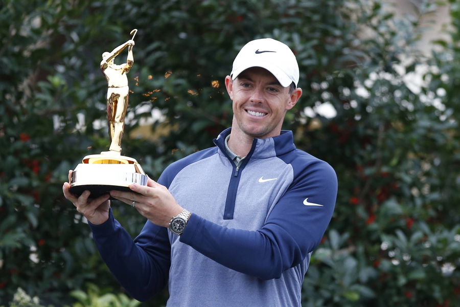 PONTE VEDRA BEACH, FL – MARCH 17: Rory McIlroy of Northern Ireland poses with the trophy after winning THE PLAYERS Championship on March 17, 2019 on the Stadium Course at TPC Sawgrass in Ponte Vedra Beach, Fl. (Photo by David Rosenblum/Icon Sportswire) GOLF: MAR 17 PGA Golf Herren – THE PLAYERS Championship PUBLICATIONxINxGERxSUIxAUTxHUNxRUSxSWExNORxDENxONLY Icon19031712372