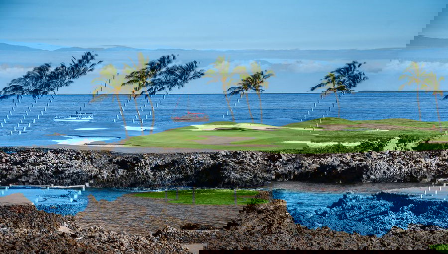 Located on the Kohala Coast of The Big Island, the 15th hole of the South Course is the main attraction of the Mauna Lani Resort. The 196-yard par-3 hole is one of the most photogenic holes in the world.