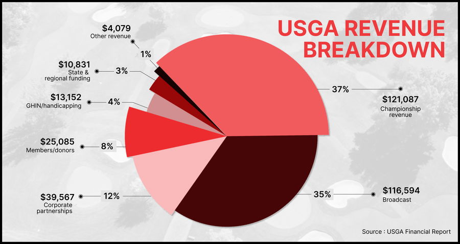 - According to an analysis by Global Data, the annual sponsorship revenue for the 2024 US Open was $50.25M. Whereas, Perfect Putt reported that in 2022, USGA garnered $304M in total revenue, of which $114M came from broadcast and media rights.