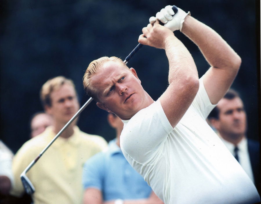 Jack Nicklaus shows his form for the fans at the Thunderbird Classic in June of 1961 in Clifton, New Jersey. (Photo by Transcendental Graphics/Getty Images)