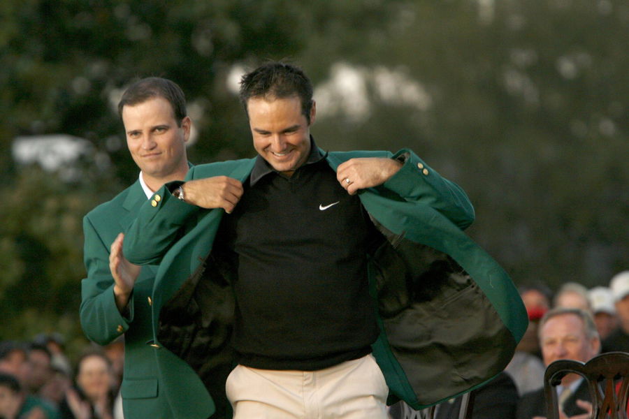 April 14, 2008 – Zach Johnson, the 2007 Masters champion, puts the green jacket on Trevor Immelman during the green jacket presentation after the final round of the Masters tournament at Augusta National Golf Club, Sunday, April 13, 2008, in Augusta, Georgia. (C. Aluka Berry/The State/MCT) News Archive – April 14, 2008 – ZUMAm67_