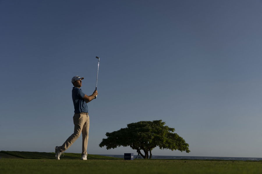 January 15, 2022; Honolulu, Hawaii, USA; Russell Henley hits his tee shot on the 17th hole during the third round of the Sony Open in Hawaii golf tournament at Waialae Country Club. Mandatory Credit: Kyle Terada-USA TODAY Sports