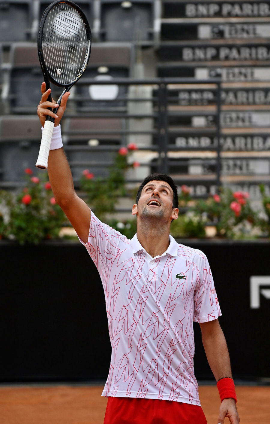 Novak Djokovic celebrates his victory at the quarters of the Italian Open 2020. via REUTERS/Riccardo Antimiani