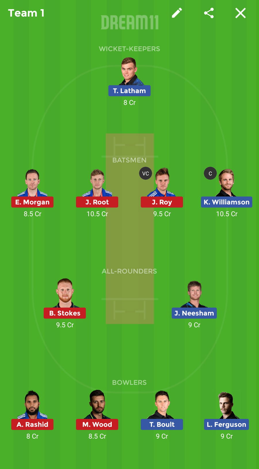 Kane Williamson and Jason Roy have been chosen the captain and vice-captain respectively of the ENG vs NZ Dream 11 team predictions.