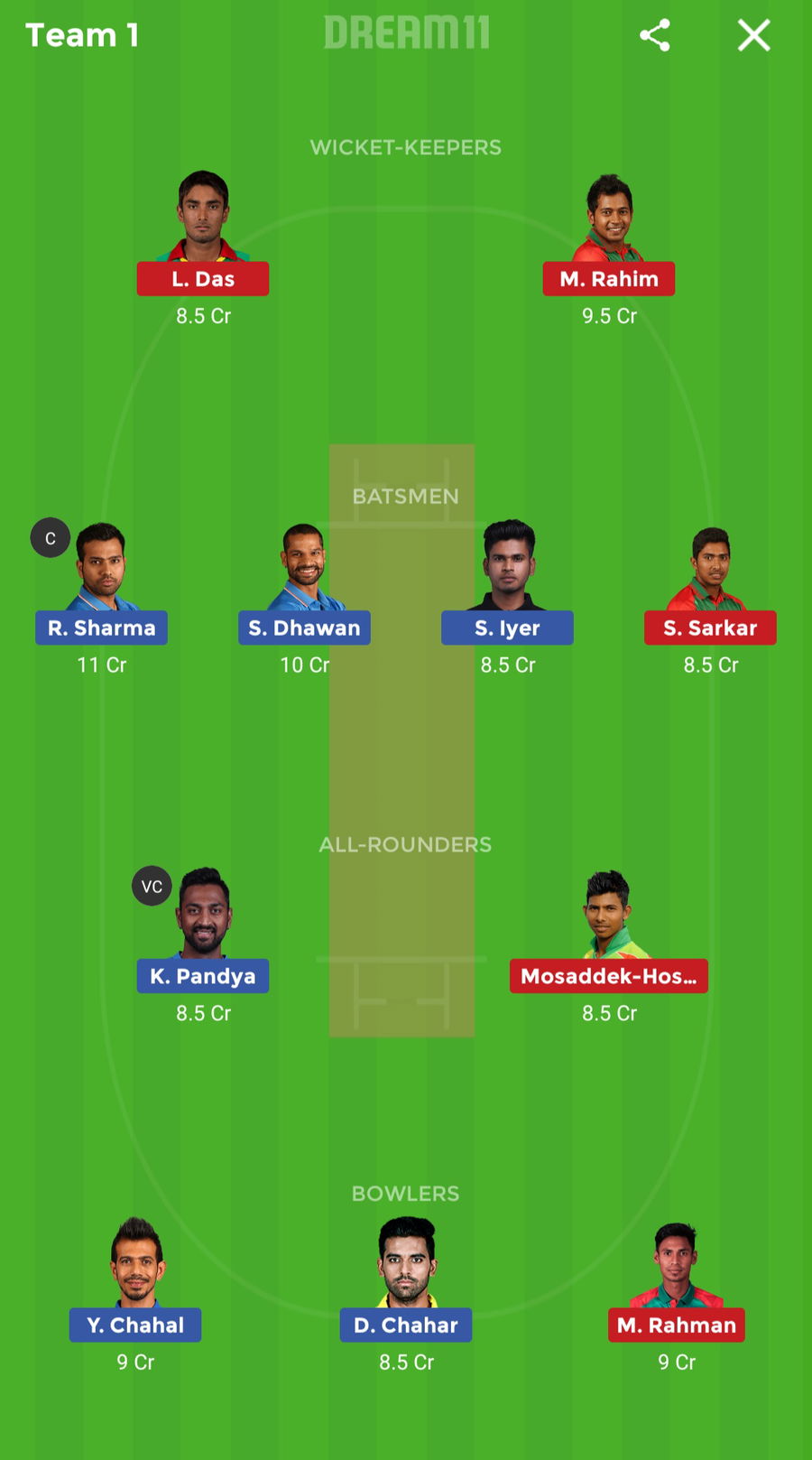 Bowlers: Yuzvendra Chahal, DeepakChahar, Mustafizur Rahman