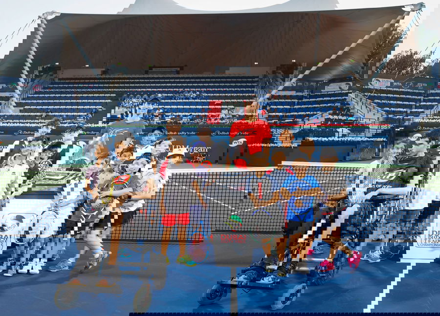Later, Djokovic unveiled the trophy of the Dubai Duty-Free Tennis Championships to the young kids.