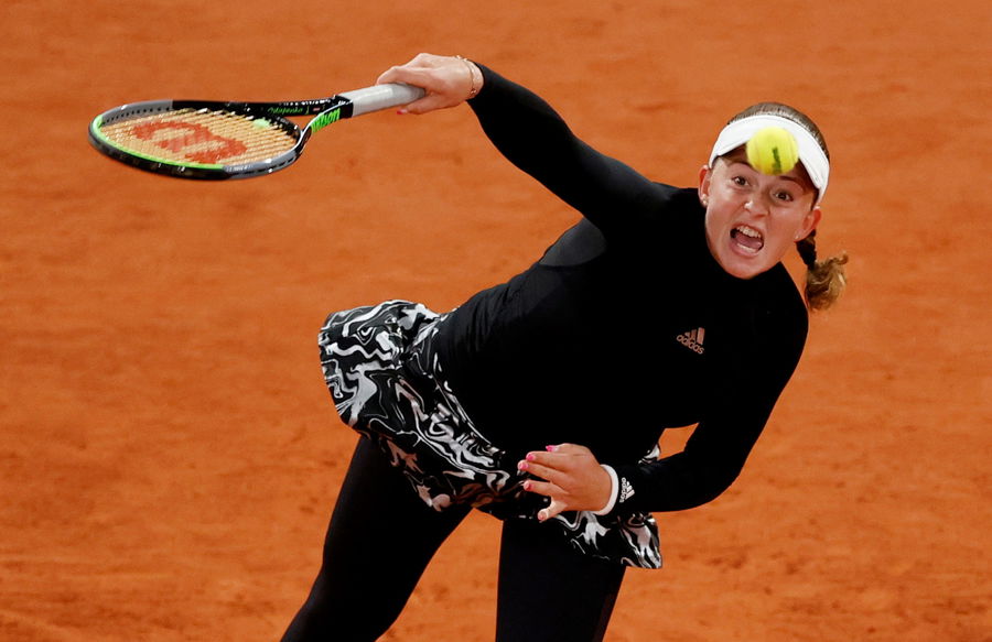 Jelena Ostapenko in action during her second-round match Karolina Pliskova at French Open 2020. REUTERS/Christian Hartmann