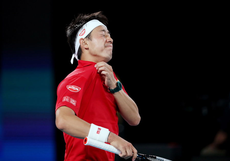 Tennis – ATP Cup – Melbourne Park, Melbourne, Australia, Japan’s Kei Nishikori reacts during his group stage match against Argentina’s Diego Schwartzman REUTERS/Asanka Brendon Ratnayake