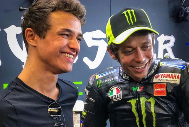 At the British Grand Prix, Norris’ dream came true as he managed to meet the Yamaha rider. During that race weekend, Lando Norris took advantage of the meeting to stock up on Rossi merchandise, including a Doctor-themed bucket hat that he wore on a live stream on Twitch.