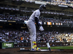 As the Yankees beat the Rangers in the series opener, a wild fight in the stands caused a Yankees fan to fall down the stairs.